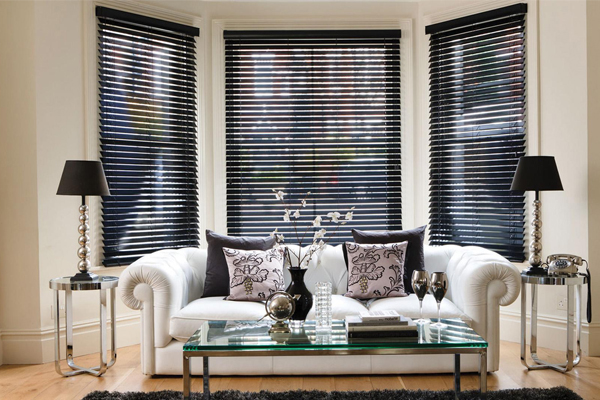 Расположенные планки в горизонтальном положении являются основной конструкцией. Они объединены между собой прочными тонкими шнурками, которые прикрепляются к карнизу. Эти шнурки и приводят в движение планки. Кстати, сами планки могут быть из разных цветов и материалов. Алюминиевые, пластиковые, деревянные и бамбуковые. Аккуратный вид придает межрамное размещение жалюзи. Это когда карниз крепится между створками окна. Горизонтальные жалюзи визуально расширяют пространство.
