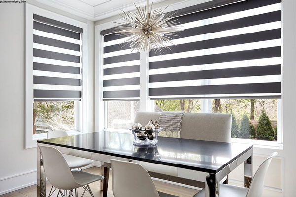 Ткань движется вниз, раскручиваясь из валика. Фиксируется полотно на любом уровне. Существует еще кассетные жалюзи и мини-жалюзи, отличающиеся компактностью самого кронштейна и креплением на особую липкую ленту (без сверления)