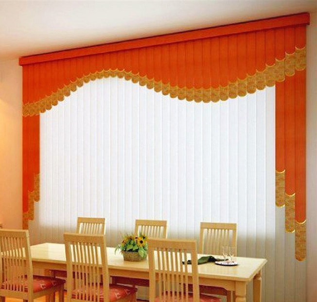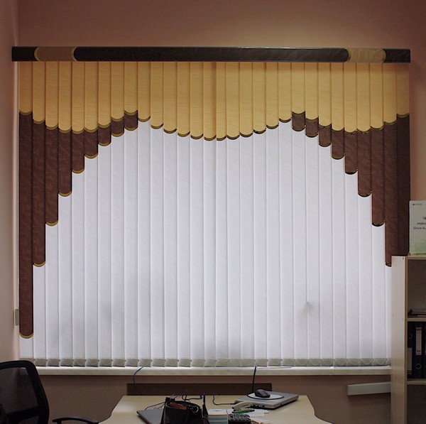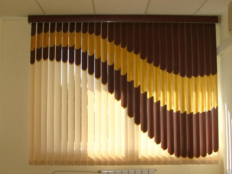 делая его более элегантным. Соответственно отличие в вертикальном расположении ламели, низ которых объединяют цепочкой. Конструкцию крепят не только на само окно, но и на потолке, и на откосе. Купить вертикальные жалюзи можно не только из пластика, алюминия или дерева, но и из ткани, которую утяжеляют грузиком, чтобы они были более устойчивы.